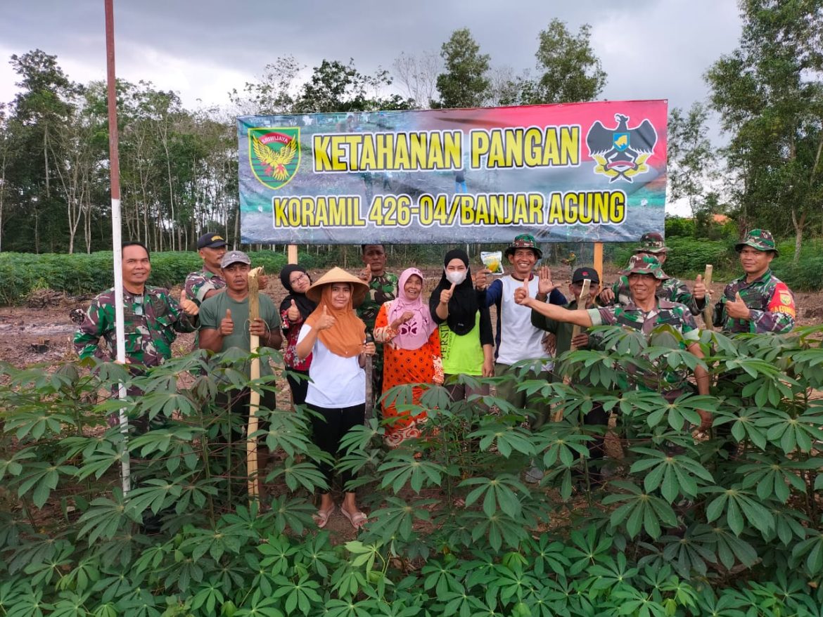 JALURNEWS.COM, Tulang Bawang – Perkuat ketahanan pangan wilayah, Koramil 426-04 Banjar Agung, Kodim 0426 Tulang Bawang bersama masyarakat bergotong royong tanam jagung, Selasa, (12/7/2022).