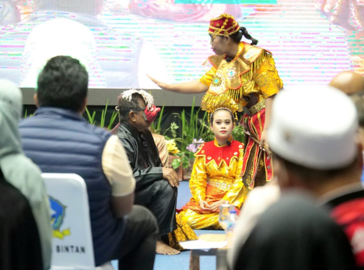 Menjunjung tinggi nilai budaya Melayu, Bintan mempersembahkan tari Zapin Pesisir beserta Makyong Kreasi yang kembali menampilkan tokoh “Awang” dengan tema Pekan Olahraga Pelajar.