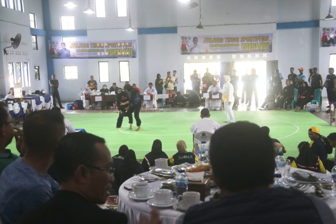 JALURNEWS.COM, BINTAN – Plt Bupati Bintan Roby Kurniawan menyaksikan pertandingan semi final Popda Kepri Ke VIII cabor pencak silat di Gedung Community Centre Kawal, Kamis (28/07). Saat tiba di lokasi, Roby sempat menyaksikan beberapa pertandingan dimana atlit pencak silat Bintan berhasil memastikan diri lolos ke babak final.