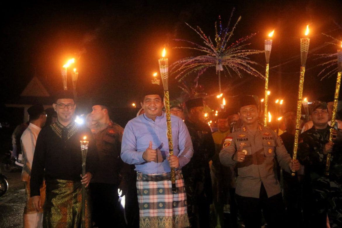 Bersama FKPD dan OPD Bintan, Roby memegangi obor dan berjalan bersama seluruh peserta pawai. Dimulai dari halaman Masjid An Nur (Masjid Pink) Gunung Kijang, Roby menyusuri jalan menuju Gedung Community Centre Kawal disambut antusias masyarakat yang memadati pinggiran jalan.