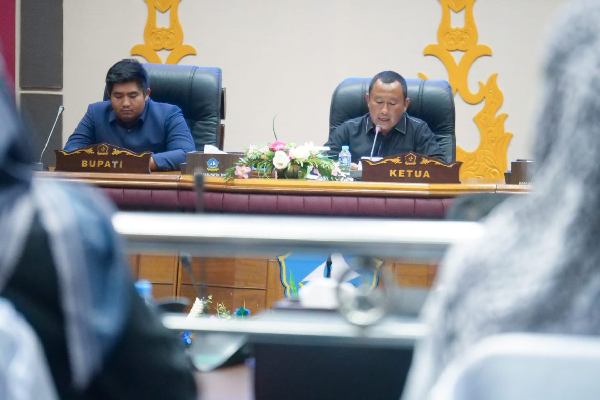 Rapat Paripurna tersebut dipimpin oleh Ketua DPRD Bintan, Agus Wibowo dan dihadiri Plt. Bupati Bintan, Roby Kurniawan, Jajaran Forkopimda Kabupaten Bintan dan seluruh Kepala OPD Pemerintah Kabupaten Bintan, beserta Jajaran anggota DPRD Kabupaten Bintan di ruang Rapat Paripurna DPRD Kabupaten Bintan, Rabu (10/08/2022) pagi.