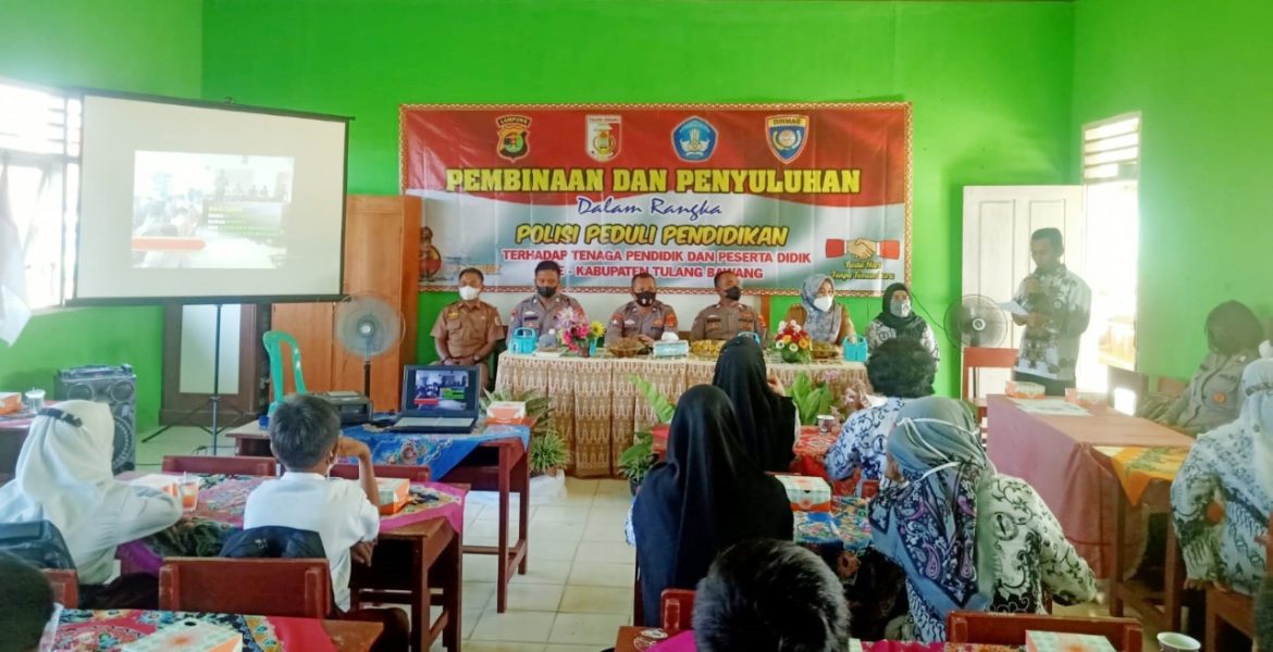 Satuan Pembinaan Masyarakat (Sat Binmas) Polres Tulang Bawang, Polda Lampung, melaksanakan kegiatan pembinaan dan penyuluhan (binluh) kepada pelajar dan tenaga pendidik (guru).