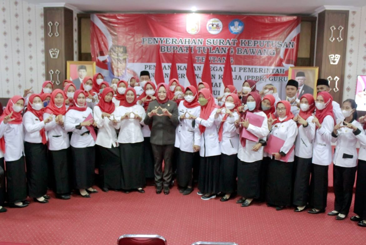 Bupati Tulang bawang hadir secara langsung membagikan SK ini dengan didampingi oleh Sekretaris Daerah Kabupaten Tulang Bawang serta para Pejabat pimpinan Tinggi Pratama di lingkup Pemerintah kabupaten Tulang Bawang.