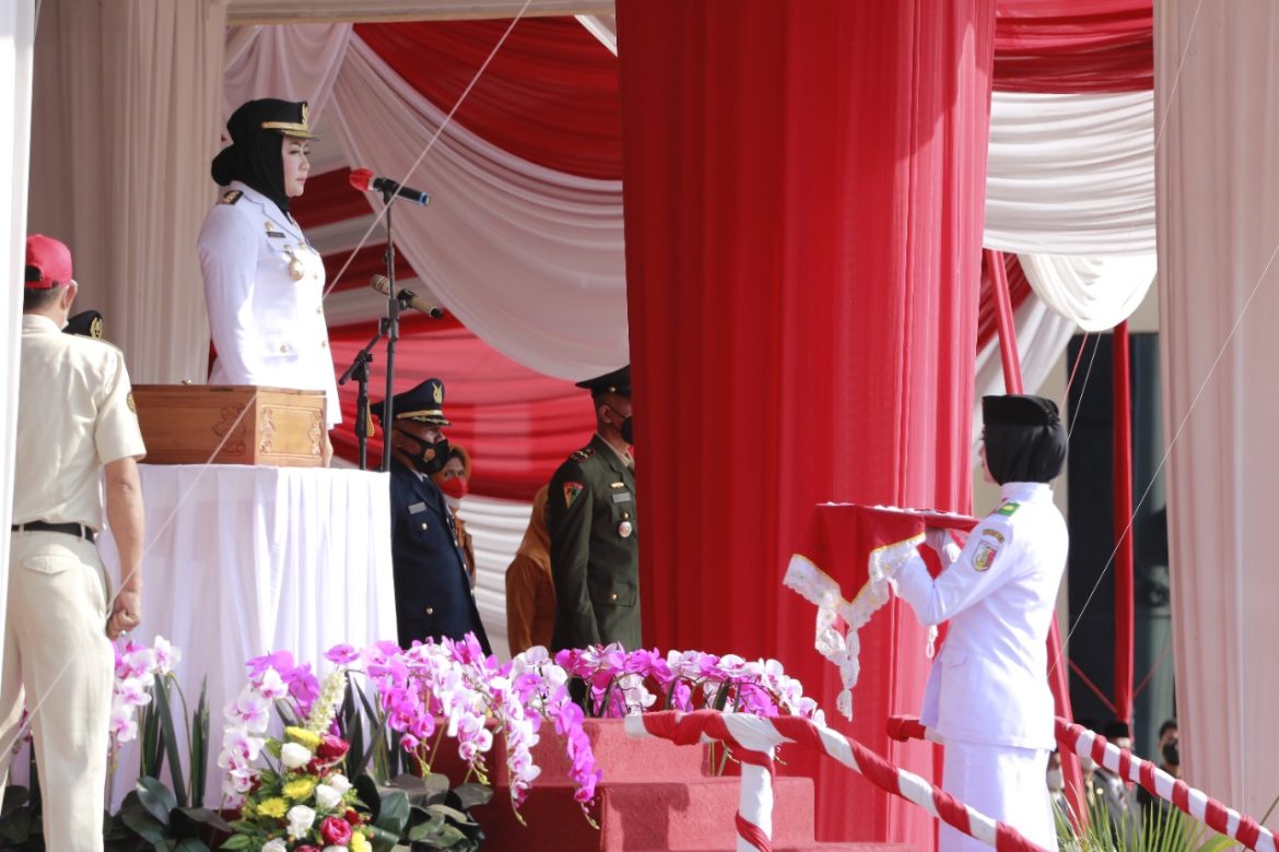 ” Terimakasih kepada seluruh peserta upacara yg dengan khidmad mengikuti kegiatan ini,juga selamat dan sukses kepada Paskibraka yang dengan mantap menyelesaikan tugasnya dengan sangat baik semoga kesuksesan ini menjadi bekal utama bagi para anggota paskibraka dalam meraih kesuksesan- kesuksesan selanjutnya, amin yarobbal alamin ” Ujar Bupati Winarti.