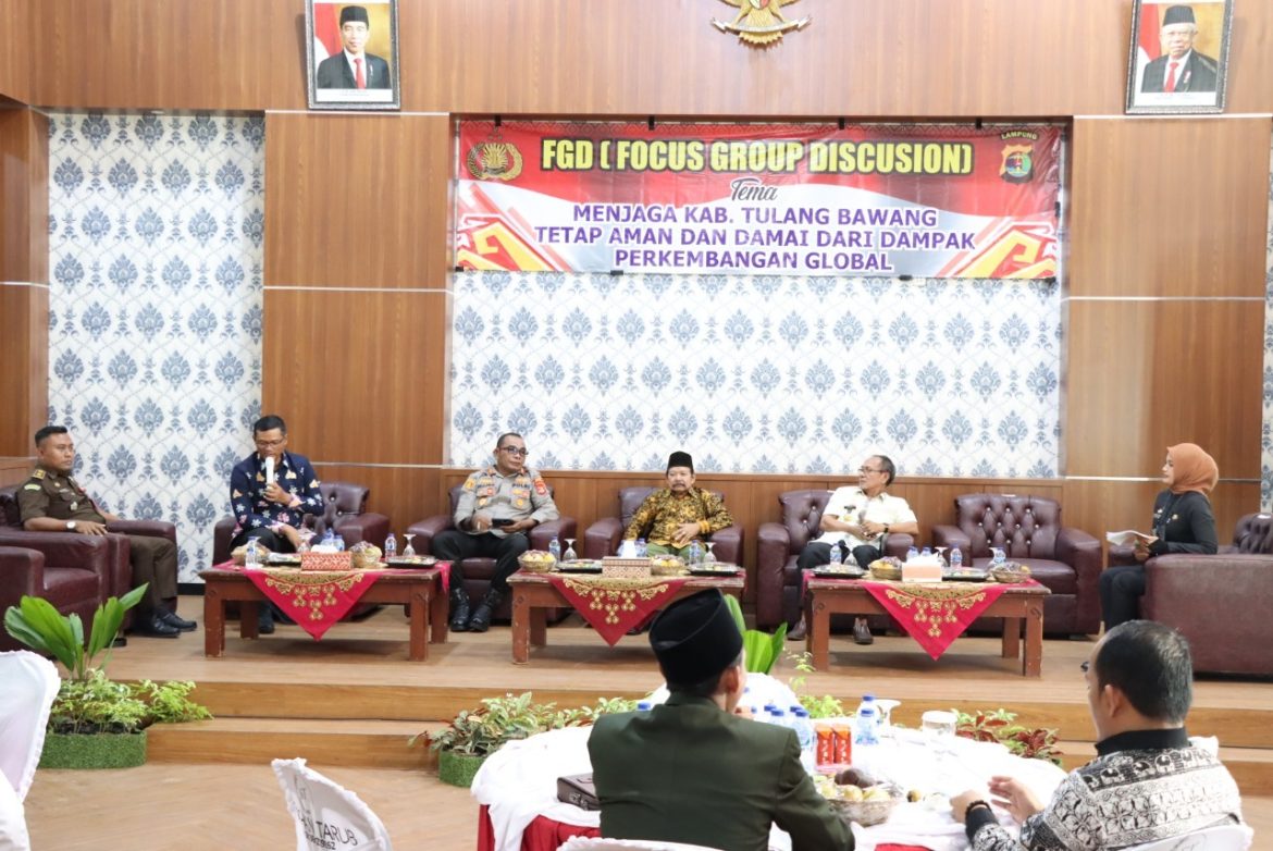Kegiatan FGD ini dihadiri oleh Kapolres, Bupati yang diwakili Sahli Bidang Ekonomi, Forkopimda plus, PJU Polres, Kapolsek jajaran, Ketua PWI Tulang Bawang, Tokoh Agama, Tokoh Masyarakat, dan Tokoh Adat. (*)