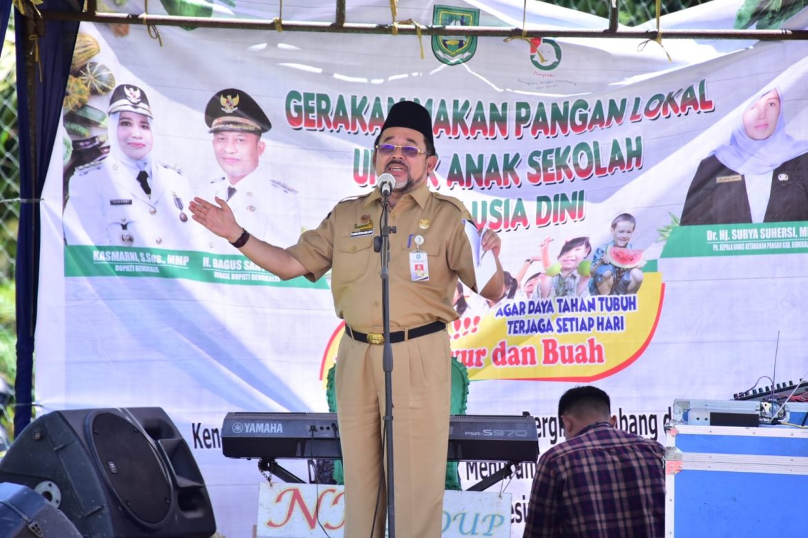 Demikian disampaikan Bupati Bengkalis Kasmarni melalui Sekretaris Daerah H. Bustami. HY, dalam arahannya saat menghadiri kegiatan gerakan makan pangan lokal untuk anak sekolah dan anak usia dini, yang ditaja Dinas Ketahanan Pangan Kabupaten Bengkalis bertempat di lapangan bola jl. Dusun Tua Desa Meskom, Senin 12 September 2022.