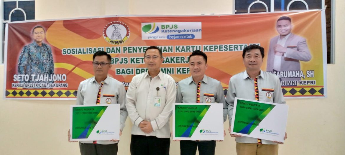 Sosialisasi dan penyerahan secar simbolis ini dihadiri langsung oleh kepala cabang BPJS-TK, Seto Tjahjono selaku pimpinan cabang Tiban-Sekupang dan seluruh jajarannya dan dihadiri seluruh pengurus DPD HIMNI Kepri.