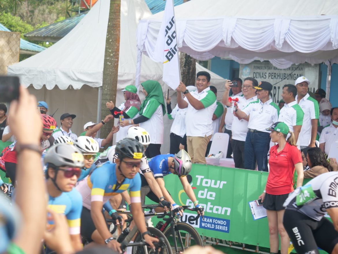 JALURNEWS.COM, BINTAN – Bupati Bintan, Roby Kurniawan secara resmi melepas event balap sepeda Internasional Tour de Bintan 2022 di Kawasan Pariwisata Lagoi, Sabtu (15/10) pagi. Pelepasan peserta tersebut merupakan rangkaian hari kedua event sport tourism yang digelar di Bintan usai tertunda akibat pandemi Covid 19 dua tahun lamanya.