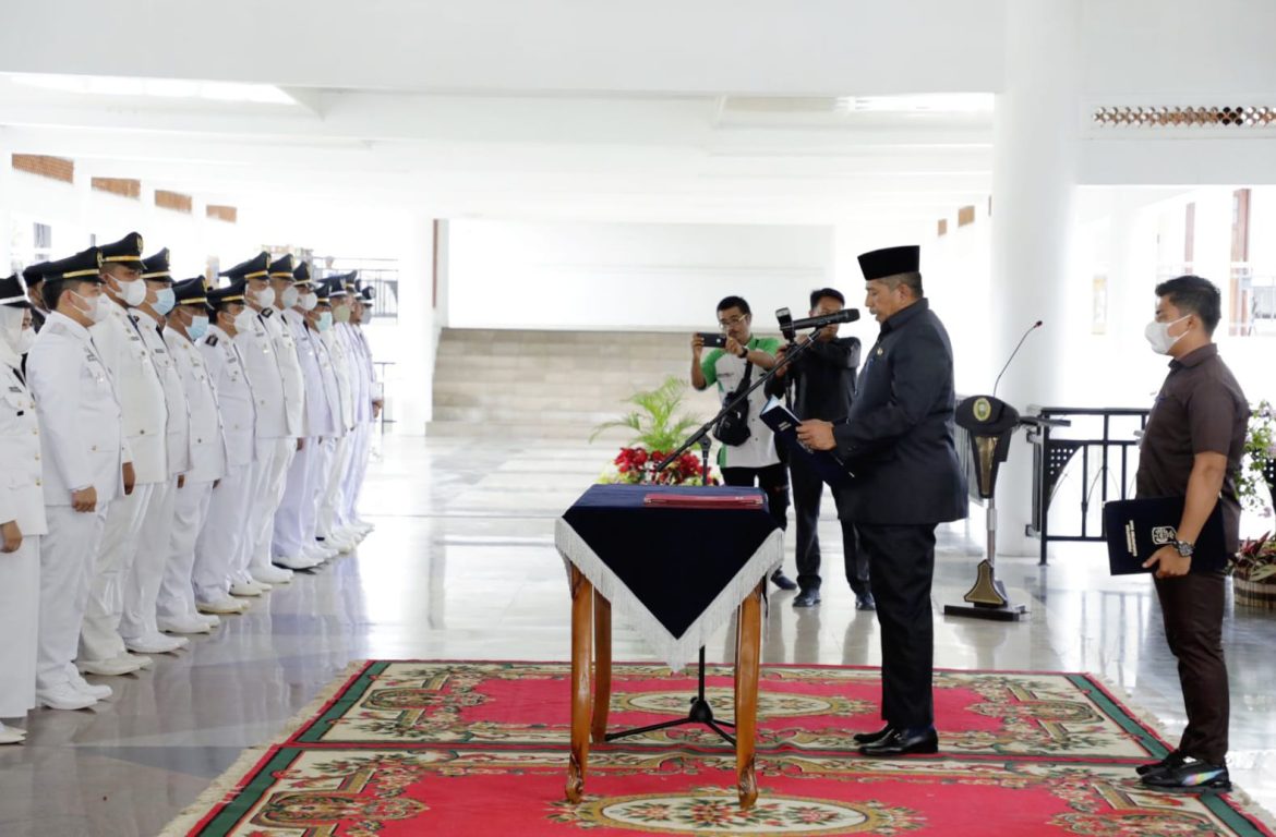 JALURNEWS.COM, SIAK- Bupati Siak Alfedri melantik dan mengambil sumpah 132 pejabat dilingkungan pemerintah Kabupaten Siak dari keseluruhan jumlah tersebut, 10 orang diantaranya dilantik untuk jabatan eselon II b atau Kepala Dinas 30 orang jabatan eselon III a, 29 orang untuk jabatan III b, 43 orang untuk jabatan eselon IV a, dan 15 orang untuk jabatan eselon IV b. Dalam pelantikan pejabat kali ini, turut dilantik 10 orang camat dan 5 orang lurah se-Kabupaten Siak.