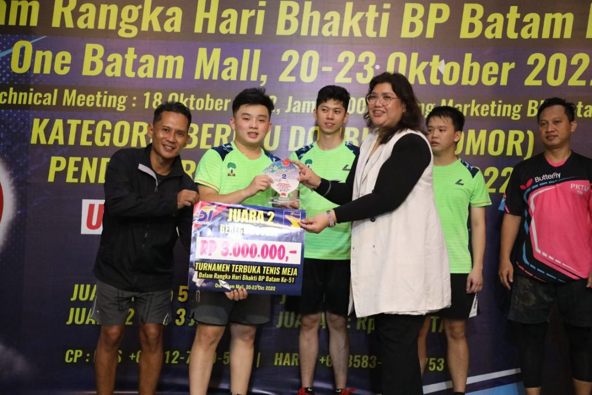 JALURNEWS.COM, BATAM – Bersempena Hari Bakti ke-51, BP Batam sukses menggelar Turnamen Terbuka Tenis Meja yang berlangsung selama empat hari, sejak 20 hingga 23 Oktober 2022. Pembukaan & Penutupan turnamen ini digelar di One Batam Mall, pada KAMIS (20/10/22) dan Minggu (23/10/22) dengan kategori yang dipertandingkan adalah beregu double (3 Nomor double).