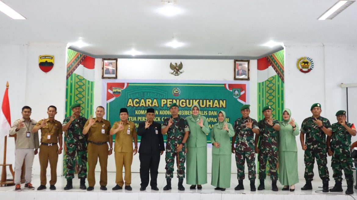 JALURNEWS.COM, BENGKALIS – Dandim 0303/Bengkalis, Letkol Inf Endik Yunia dan Ketua Persatuan Istri Tentara (Persit) Kartika Cendana Cabang LII Bengkalis, Ny. Kiki Endik Yunia, dikukuhkan sebagai bapak dan bunda asuh anak stunting (Baas) Kabupaten Bengkalis, Selasa, 8 November 2022.