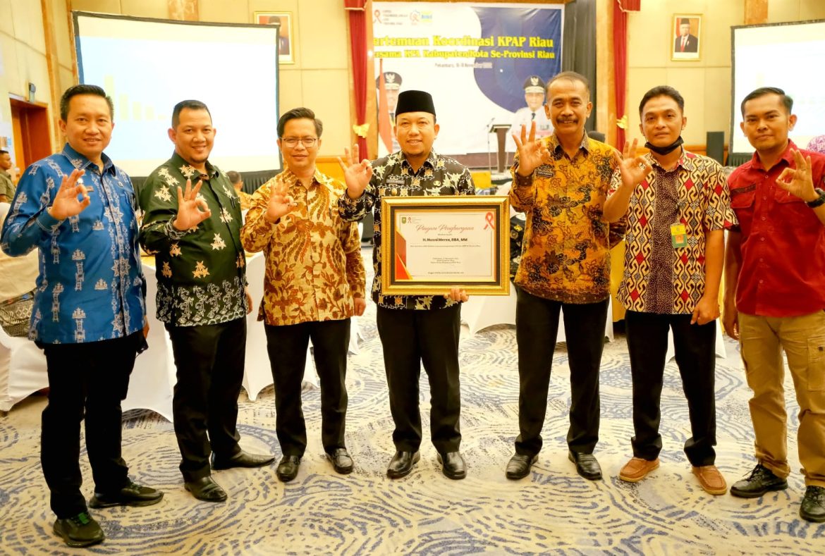 JALURNEWS.COM, SIAK- Komisi Penanggulangan AIDS Provinsi Riau (KPAP) mengelar Rapat Koordinasi Daerah KPA se Provinsi Riau Tahun 2022. Bersamaan dengan itu, Wakil Gubernur Riau yang juga ketua KPAP Edy Natar Nasution menyerahkan penghargaan kepada H Husni Merza, BBA, MM atas kontribusi aktif upaya penanggulangan HIV dan AIDS di Provinsi Riau.