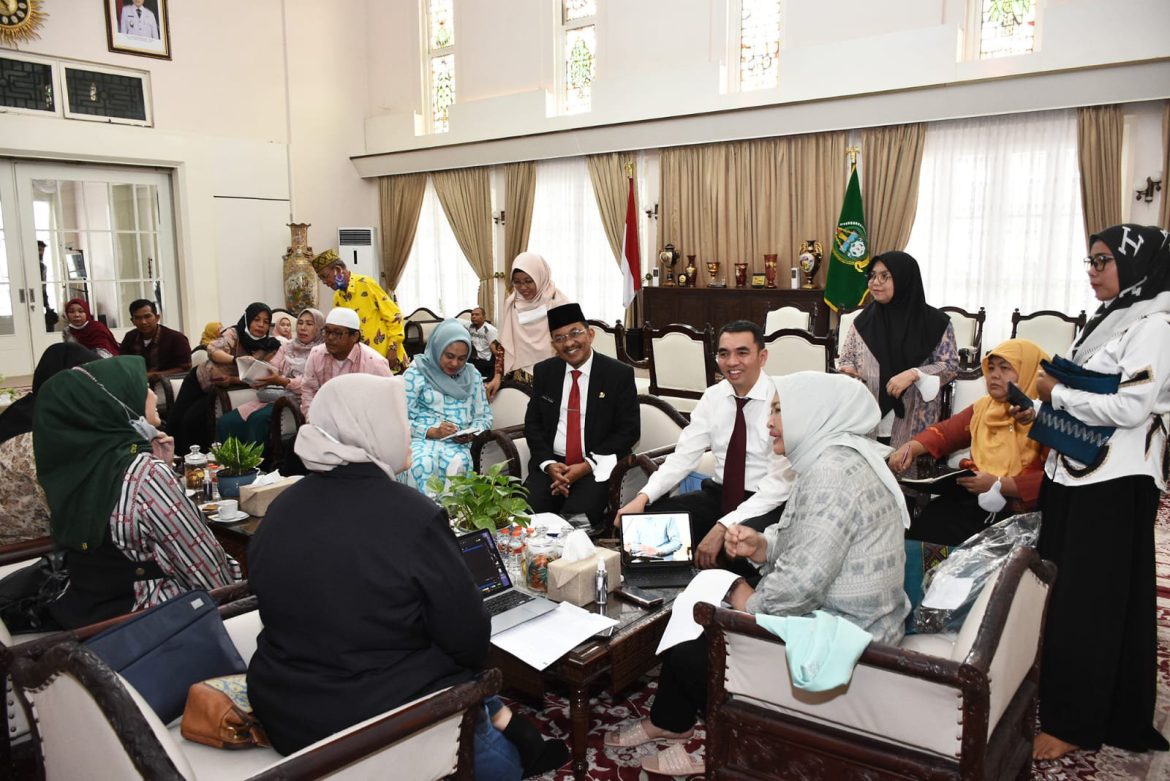 JALURNEWE.COM, MEDAN – Ketua Dewan Kerajinan Nasional (Dekranasda) Sumatera Utara (Sumut) Nawal Lubis bertemu dengan sejumlah pengrajin kain tenun dan songket berbagai daerah di Rumah Dinas Gubernur, Jalan Jenderal Sudirman, Nomor 41 Medan, Kamis (5/1). Hal tersebut dalam rangka persiapan Hari Pers Nasional (HPN) tahun 2023 di Sumut, Februari mendatang.
