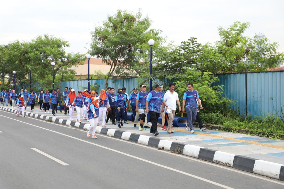 Muhammad Rudi melepas kegiatan jalan santai dan turut berkeliling di area pejalan kaki kawasan Batam Center.