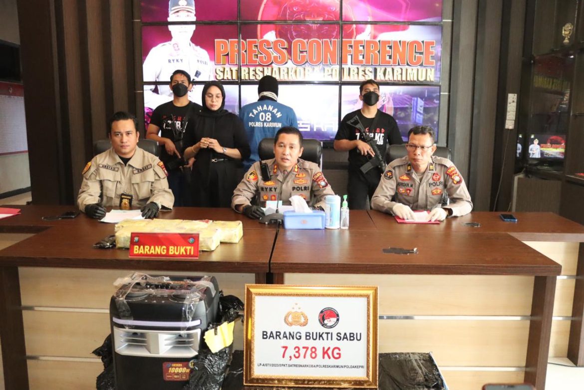 Pada hari Minggu tanggal 22 Januari 2023 tepat 1 hari nya Kapolres Karimun menjabat, sekira pukul 17.45 Wib berhasil mengamankan barang bukti satu 7 bungkus narkotika jenis sabu seberat 7.378 gram yang dibungkus plastik teh china merk Guanyinwang bewarna Gold yang disimpan dalam speaker aktif.