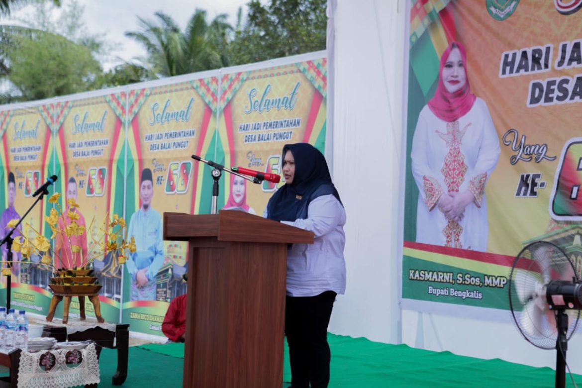 JALURNEWS.COM, BENGKALIS – Bupati Bengkalis Kasmarni menghadiri Milad ke-68 Desa Balai Pungut Kecamatan Pinggir di Tepian Batang Mandau Desa Balai Pungut, Minggu 19 februari 2023.