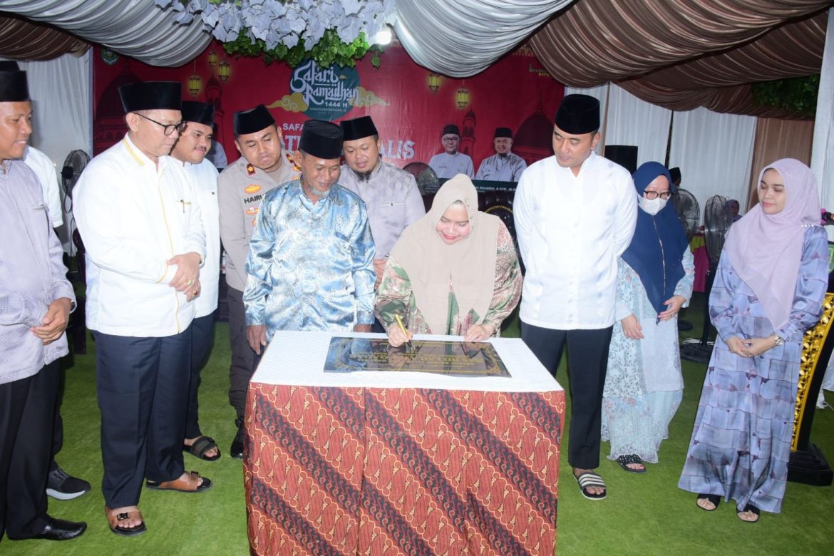Kala itu juga Bupati Bengkalis Kasmarni meresmikan Masjid Lailatul Qadar, peresmian itu ditandai dengan penandatanganan prasasti dan pemotongan pita.
