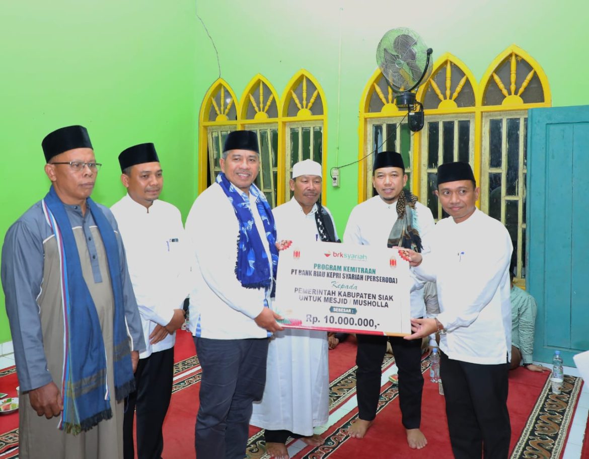 Pada kesempatan ini, Bupati Siak Alfedri juga menyerahkan bantuan berupa 10 pcs Al-Qur’an, 1 set alat Rabbana, santunan anak yatim, 3 Paket Ramadan Bahagia dari Baznas Kabupaten Siak, dan bantuan program kemitraan Bank Riau Kepri Syariah.(Awin/Intrl)