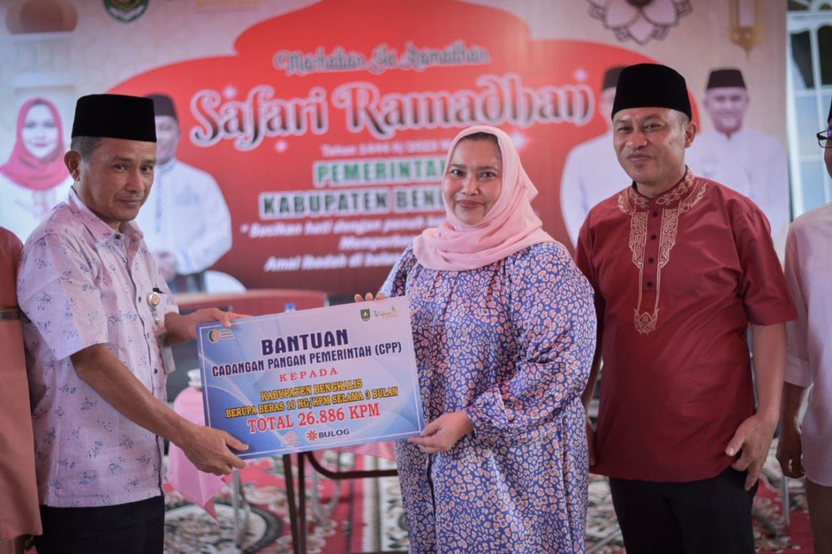 Pada kesempatan tersebut Bupati dan Wakil Bupati menyerahkan secara simbolis 2.672 Paket sembako pasar murah bersubsidi untuk masyarakat Kecamatan Bukit Batu serta menyerahkan secara simbolis bantuan pangan kepada 1.543 KPM Se-Kecamatan Bukit Batu yang setiap KPM nya menerima 10 Kg/ bulan/KPM untuk 3 bulan.