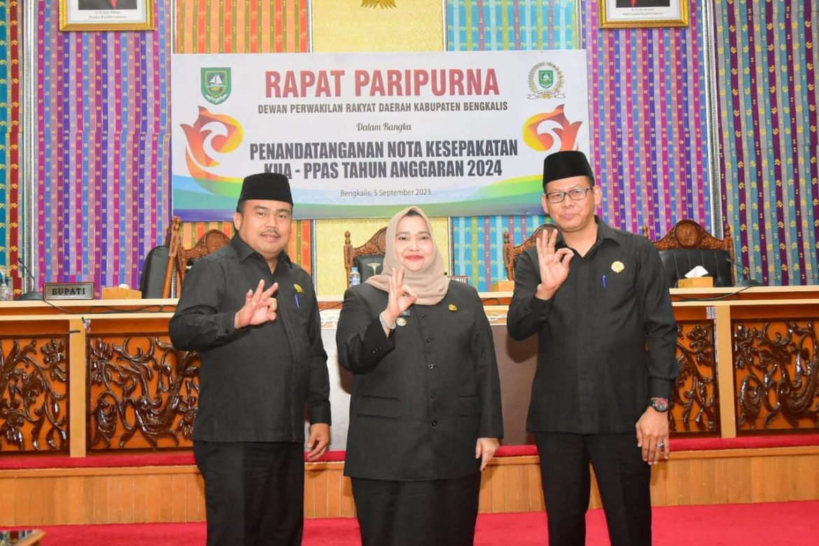 BENGKALIS – Bupati Bengkalis Kasmarni bersama Wakil Ketua Dewan Perwakilan Rakyat Daerah (DPRD) Kabupaten Bengkalis H Sofyan, menandatangani Nota Kesepakatan tentang perubahan Kebijakan Umum Anggaran (KUA) dan perubahan Prioritas Plafon Anggaran Sementara (PPAS) Anggaran Pendapatan Belanja Daerah (APBD) Kabupaten Bengkalis Tahun 2024.