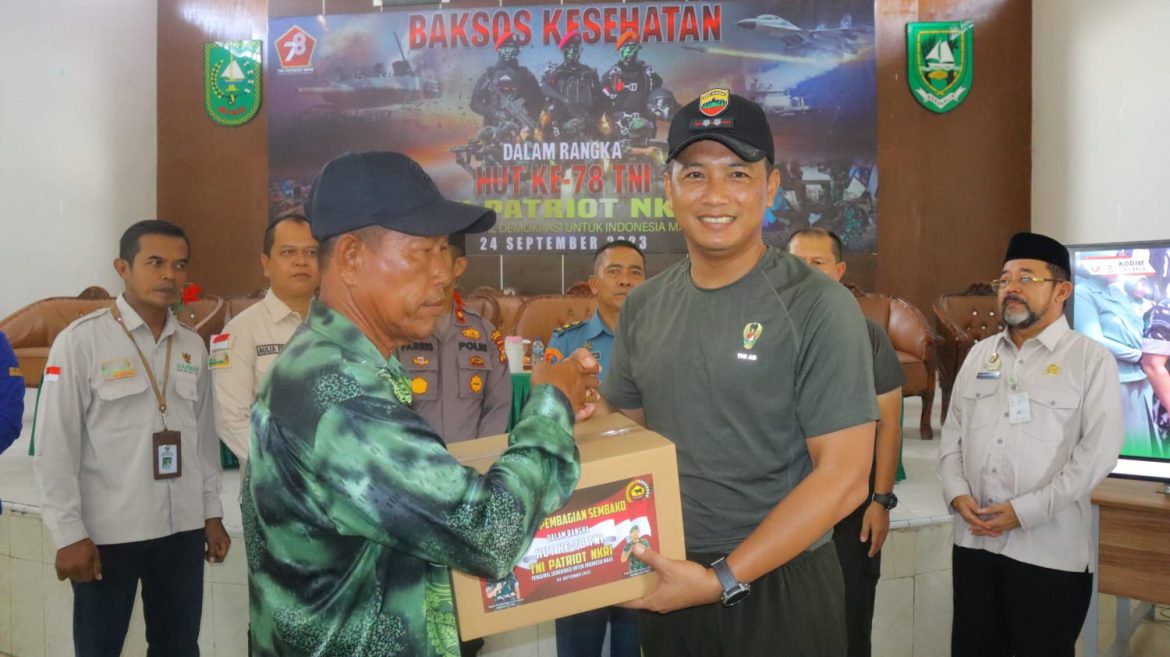 “HUT TNI ke 78 tahun 2023 kali ini, kita melakukan donor darah, pengobatan masal, sembako (100 paket) dan target 110 kantong darah untuk masyarakat dan kita akan melakukan, rehabilitasi sekolah tidak layak guna, serta melaksanakan skrining kesehatan kepada pasien katarak yang akan melaksanakan operasi,” tutur Dandim.