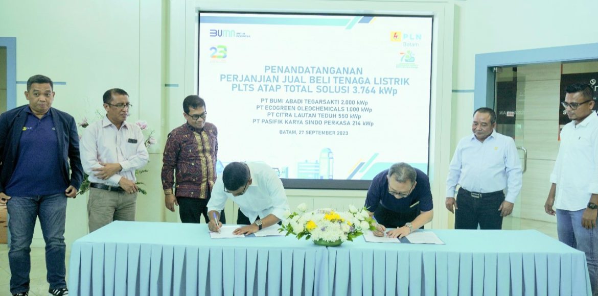 Komitmen terus diwujudkan dan hari ini penandatanganan Perjanjian Jual Beli Tenaga Listrik (PJBTL) antara PT PLN Batam dengan PT Bumi Abadi Tegarsakti, PT Ecogreen Oleochemical, PT Citra Lautan Teduh dan PT Pasifik Karya Sindo Perkasa dalam Penyediaan Pembangkit Listrik Tenaga Surya (PLTS) _Photovoltaic_ (PV) _rooftop_ dengan kapasitas total 3.764 KWp di Kantor Korporat PT PLN Batam.
