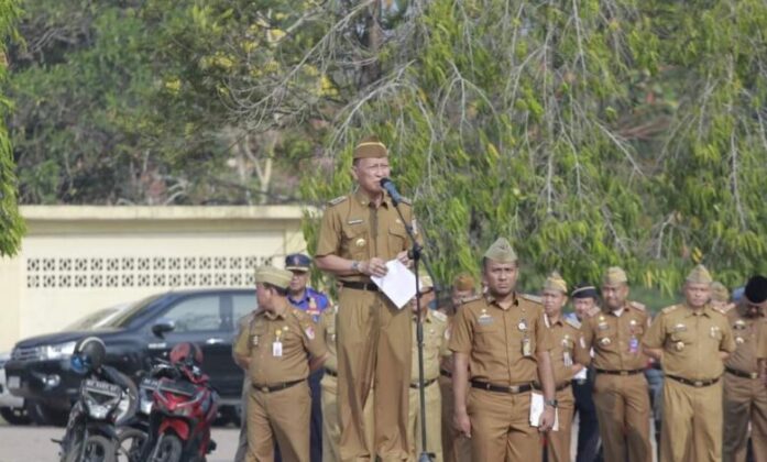 JALURNEWS.COM, Tulang Bawang-Penjabat (PJ) Bupati Tulang Bawang Drs.Qudrotul Ihwan, MM. Memimpin Apel Upacara mingguan di halaman Perkantoran Pemerintah Kabupaten Tulang Bawang Provinsi Lampung pada hari Senin (9 Oktober 2023).