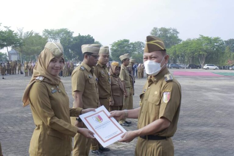 Apel mingguan ini harus di laksanakan agar Pemkab Tulangbawang dapat menilai mana pejabat atau PNS yang bermalas-malasan. Pagi ini Surat Keputusan (SK) Bupati Tulang Bawang tentang Kenaikan Pangkat Pegawai Negeri Sipil (PNS) periode 1 Oktober 2023 di serahkan kepada kalian demi semangat bekerja. (ADV)