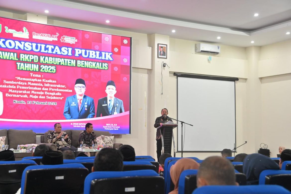 BENGKALIS – Bupati Bengkalis diwakili Staf Ahli Bupati Bidang Ekonomi, Keuangan dan Pembangunan H Bustami HY menghadiri dan membuka secara langsung forum konsultasi publik rancangan awal RKPD Kabupaten Bengkalis Tahun 2025, di Aula Gedung Administrasi Niaga Politeknik Bengkalis, Kamis 14 Februari 2024.