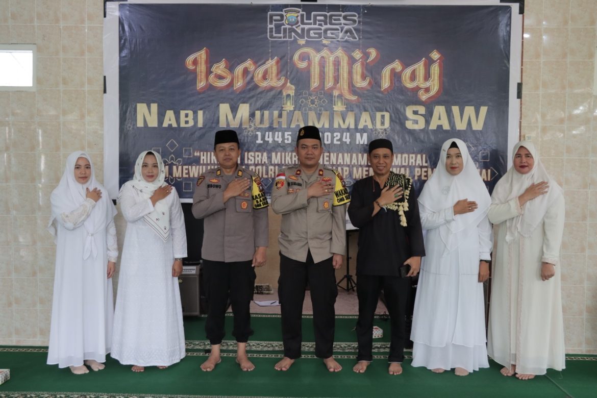 Wakapolres Lingga Kompol Adi Sumardi, S.Kom dalam sambutannya mengatakan kegiatan peringatan hari Isra’ Mi’raj merupakan kegiatan keagamaan yang bertujuan untuk memperingati perjalanan Nabi Muhammad SAW dalam satu malam dari Masjidil Haram ke Masjidil Aqso.