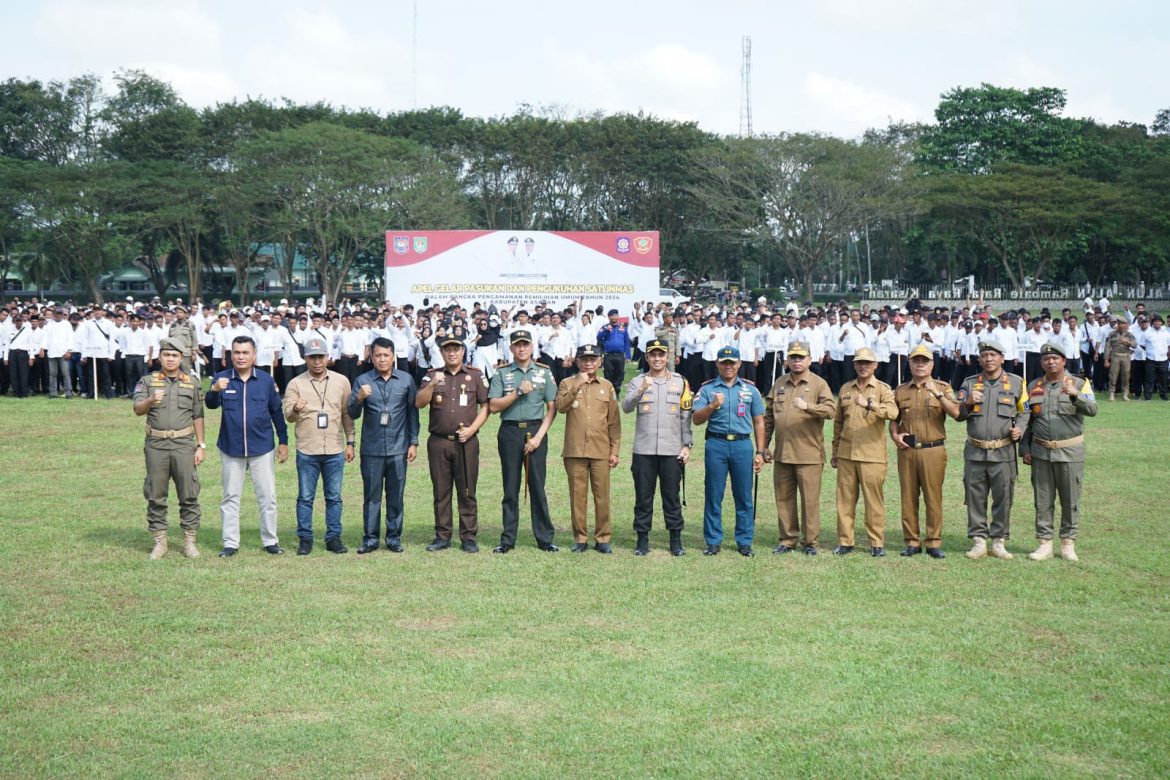 JALURNEWS.COM, ASAHAN – Bupati Asahan H Surya, BSc memimpin apel gelar pasukan dan mengukuhan Satuan Perlindungan Masyarakat (Satlinmas) di Alun-Alun Rambate Rata Raya Kisaran, Selasa (23/01/2023). Apel gelar pasukan dan mengukuhan Satlinmas ini dalam Rangka Pengamanan Pemilihan Umum Tahun 2024 di Kabupaten Asahan.