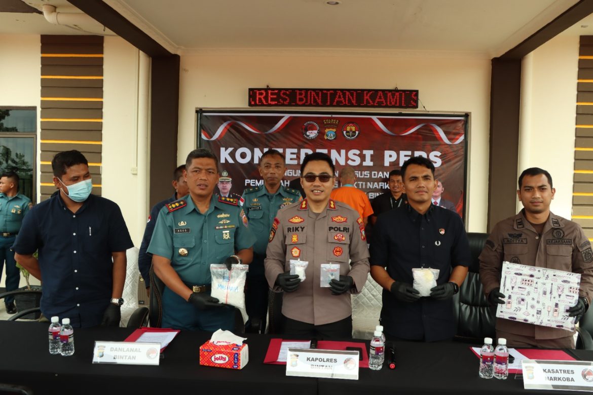 Dalam konferensi pers tersebut Kapolres Bintan AKBP Riky Iswoyo, S.I.K., M.M didampingi oleh Danlanal Bintan Letkol Laut (P) Eko Agus Susanto, S.E., M.M, Kasat Narkoba Polres Bintan Iptu Davinsi Josie Sidabutar, Kejari Bintan dan Penasehat Hukum tersangka.