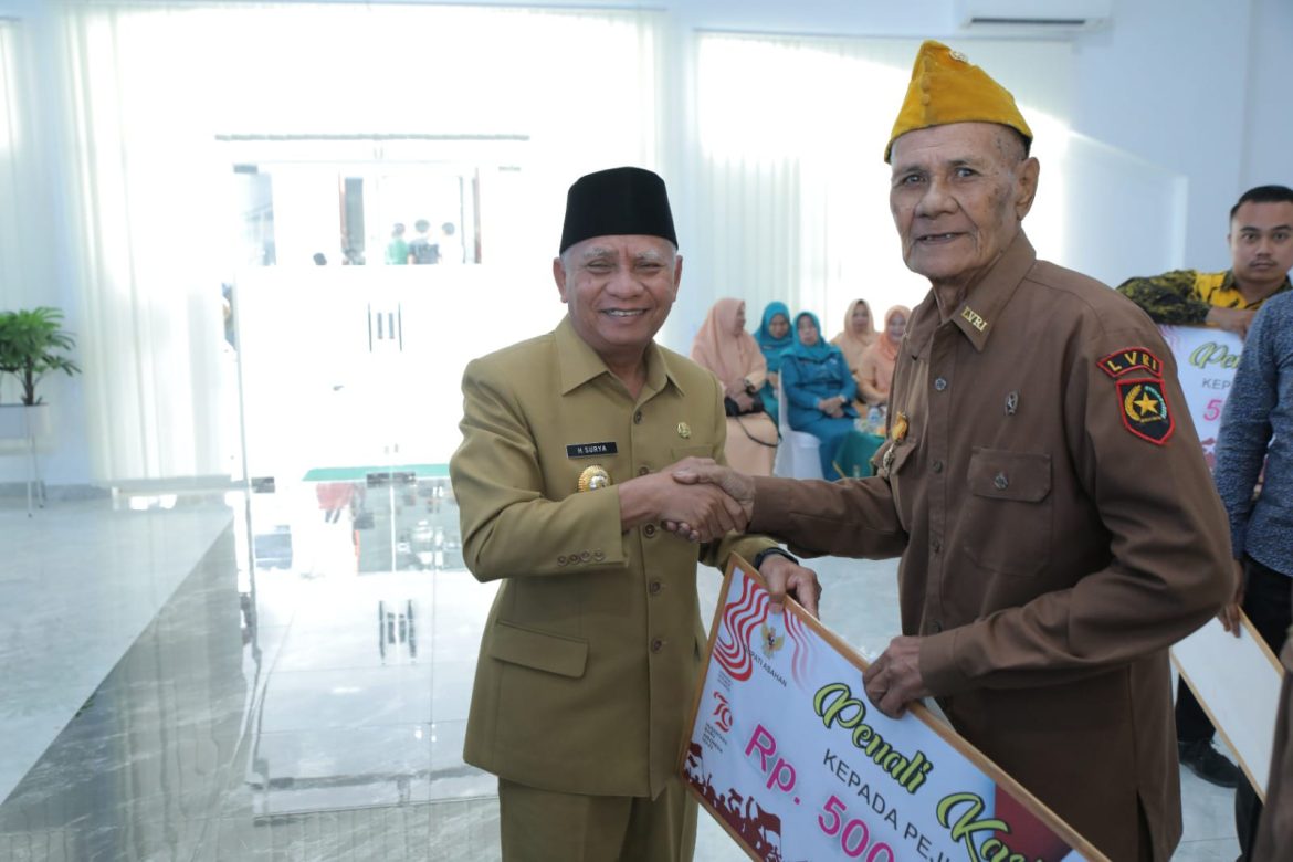 Sebelum memberikan bimbingan dan arahannya Bupati Asahan bersama dengan Dandim 0208/Asahan, Kapolres Asahan, Ketua PN Kisaran, Mewakili Kajari Asahan dan Mewakili Danlanal TBA memberikan bingkisan kepada para pejuang perintis kemerdekaan dan veteran secara simbolis