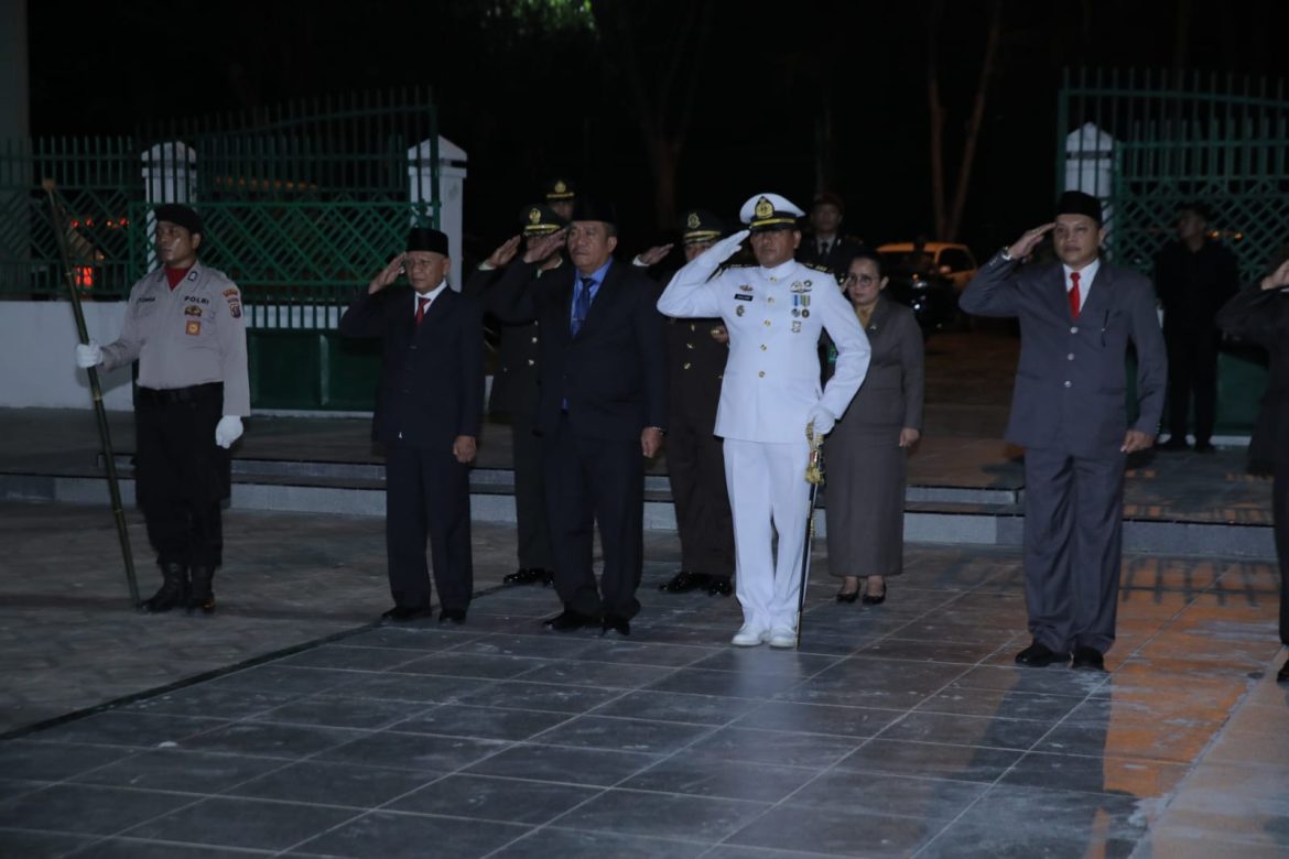 “Kami yang hadir pada hari ini, Sabtu 17 Agustus 2024 pukul 00.00 Wib pada upacara untuk memperingati jasa-jasa para pahlawan dan kami yang hadir ini menyatakan hormat yang sebesar-besarnnya atas keikhlasan dan kesucian pengorbanan saudara-saudara sebagai pahlawan dalam pengabdian terhadap perjuangan demi negara dan bangsa,” ucapnya.