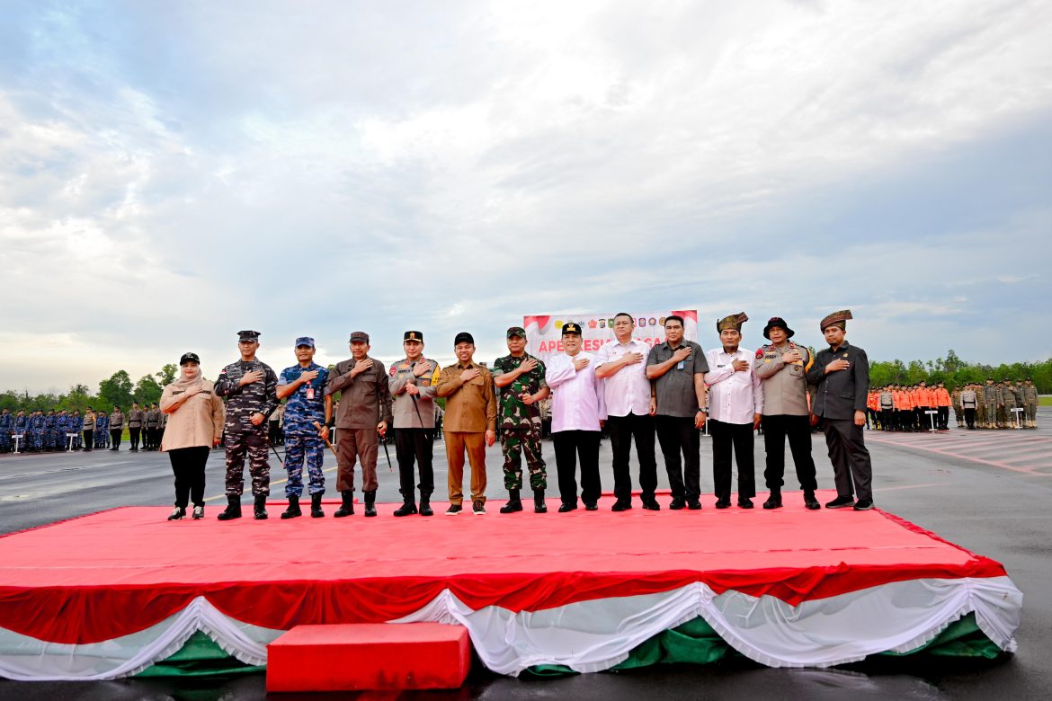 Apel tersebut, melibatkan personel TNI/Polri, BPBD, Damkar, Balai Pengendalian Perubahan Iklim dan Kebakaran Hutan dan Lahan Wilayah Sumatera dan Satpol PP.