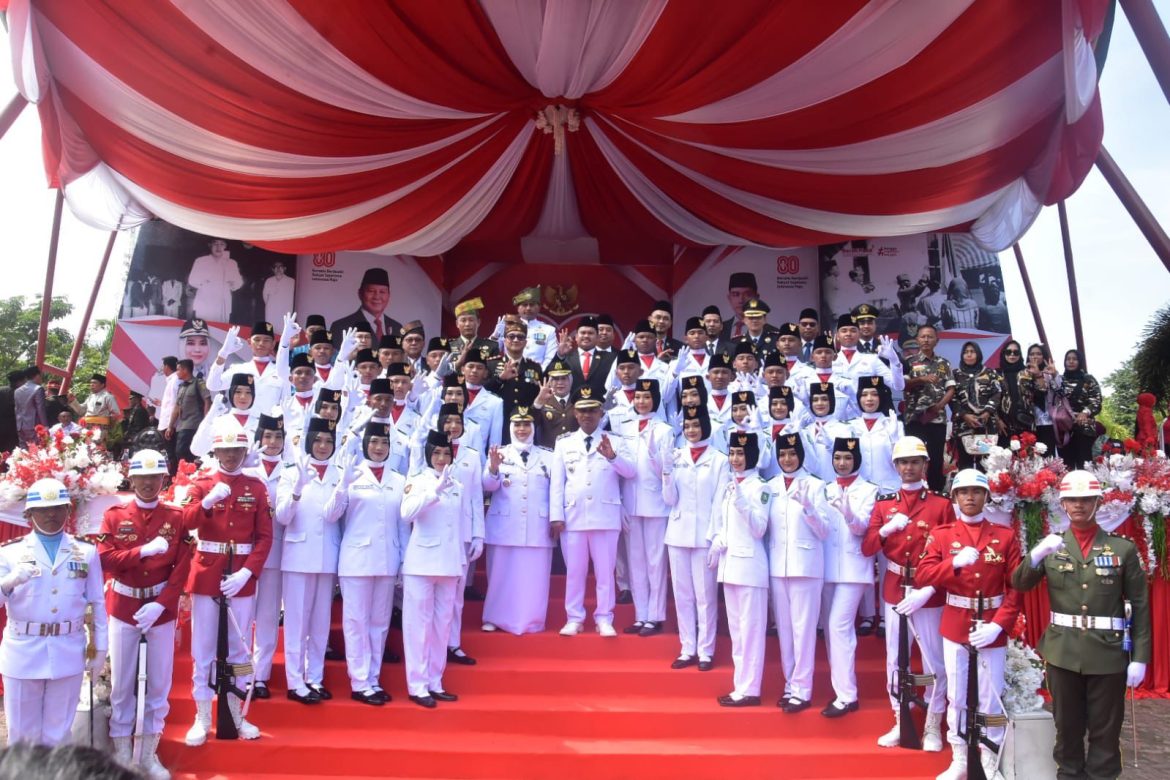 Sementara itu, pasukan inti pengibar bendera terdiri dari putra-putri terbaik Kabupaten Bengkalis.
