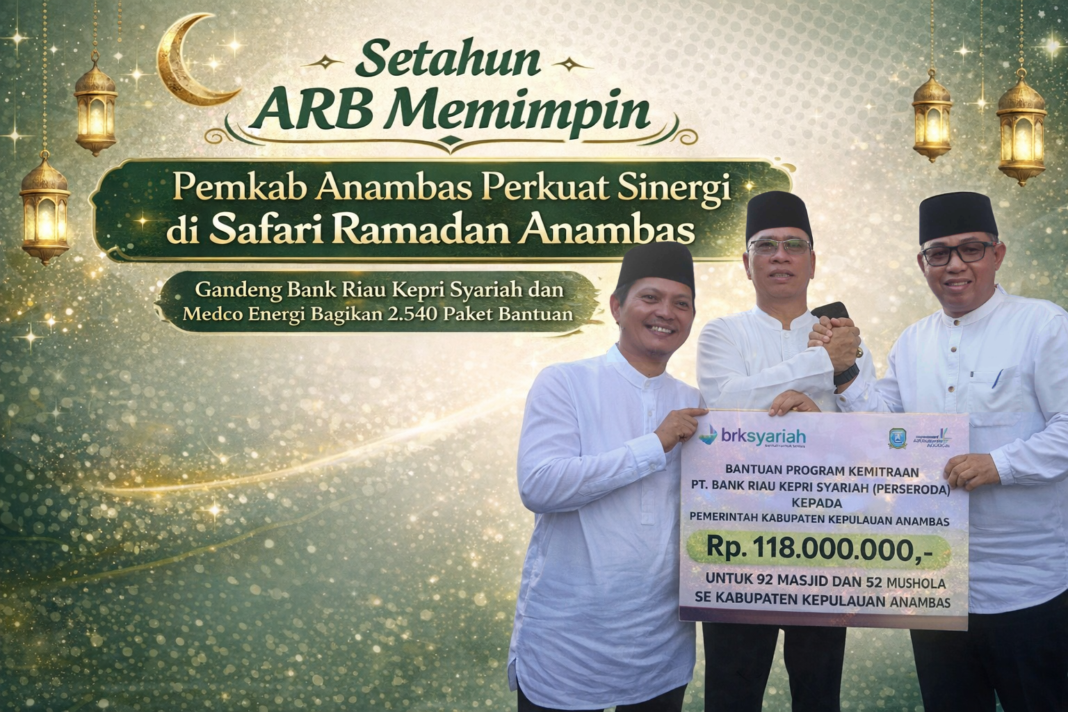 Selain itu, bantuan sembako sebanyak 10 paket untuk setiap desa dengan total 540 paket turut disalurkan. Dukungan perbankan daerah juga terlihat melalui bantuan operasional masjid dan surau dari Bank Riau Kepri Syariah Cabang Anambas Tarempa yang diserahkan secara simbolis kepada Bupati Kepulauan Anambas untuk kemudian didistribusikan kembali selama rangkaian Safari Ramadan.
