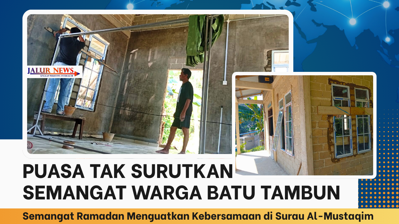 JALUR NEWS, Tarempa Selatan – Memasuki puasa ke-11 Ramadan, warga RT 001 RW 001 Batu Tambun Bawah, Kelurahan Tarempa Selatan, kembali menunjukkan semangat kebersamaan. Sabtu pagi, 1 Maret 2026, sejak pukul 08.00 WIB, mereka berkumpul di Surau Al-Mustaqim untuk bergotong royong memasang jendela.