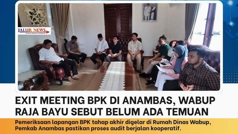JALUR NEWS, Anambas – Rangkaian pemeriksaan lapangan Badan Pemeriksa Keuangan di Kabupaten Kepulauan Anambas memasuki tahap akhir. Tahapan ini ditandai dengan digelarnya exit meeting antara tim auditor BPK bersama jajaran Pemerintah Kabupaten Kepulauan Anambas, Sabtu, 7 Maret 2026 pukul 16.00 WIB.