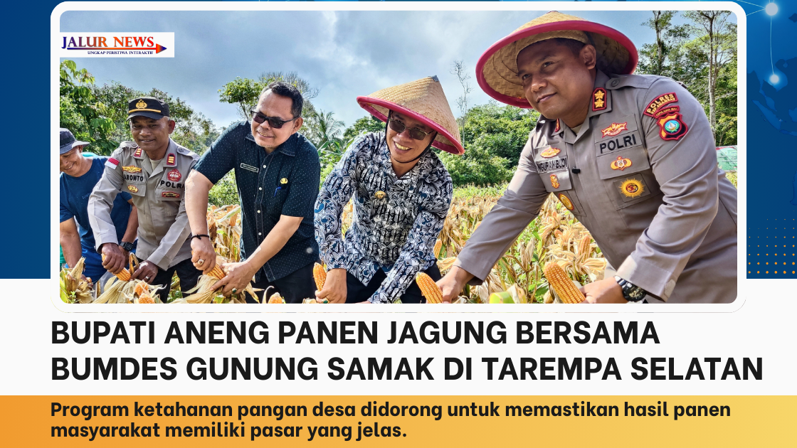 JALUR NEWS, Anambas – Bupati Kepulauan Anambas, Aneng, menekankan pentingnya kepastian pasar bagi hasil pertanian masyarakat saat menghadiri panen jagung program ketahanan pangan yang dikelola BUMDes Gunung Samak di kawasan Rintis, Desa Tarempa Selatan, Kecamatan Siantan, Kamis 12 Maret 2026.