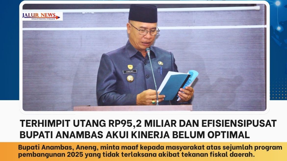 JALUR NEWS, Anambas – Bupati Kepulauan Anambas, Aneng, menyampaikan permohonan maaf kepada seluruh masyarakat Kabupaten Kepulauan Anambas atas tidak terlaksananya sejumlah program pembangunan yang telah direncanakan sepanjang tahun anggaran 2025. Dua faktor utama menjadi penyebabnya, yakni beban utang daerah tahun 2024 sebesar Rp95,2 miliar dan kebijakan efisiensi anggaran yang ketat dari pemerintah pusat.