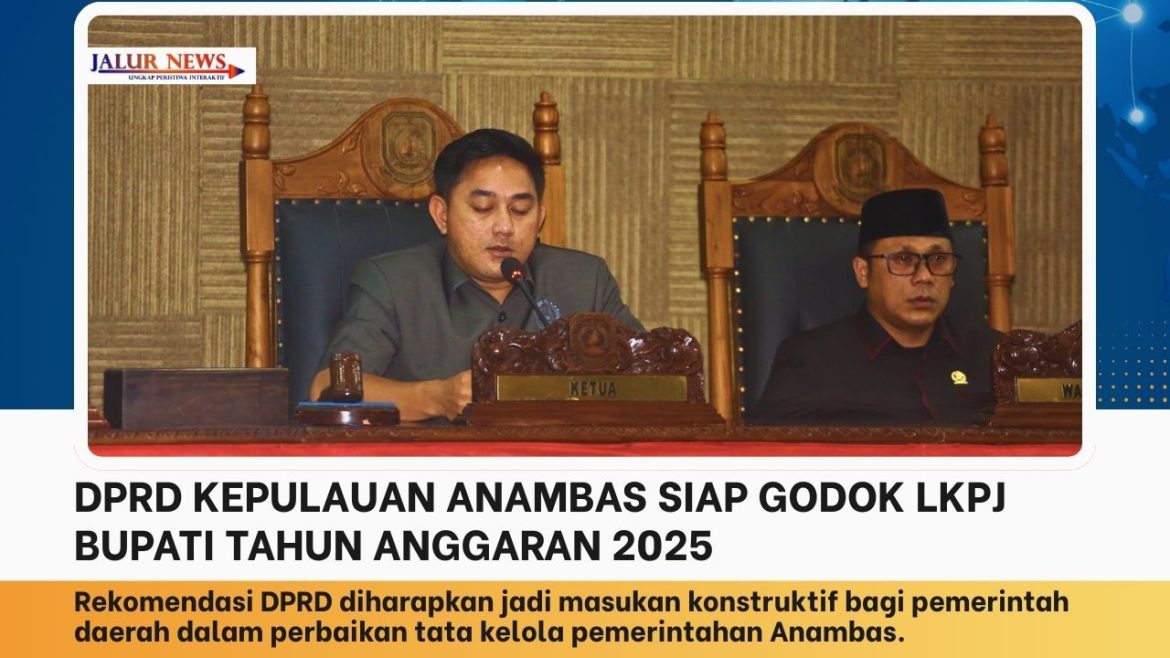 JALUR NEWS, Anambas – Dewan Perwakilan Rakyat Daerah (DPRD) Kabupaten Kepulauan Anambas menyatakan siap membahas secara mendalam Laporan Keterangan Pertanggungjawaban (LKPJ) Bupati Kepulauan Anambas tahun anggaran 2025. Pembahasan itu akan berujung pada rekomendasi DPRD kepada kepala daerah sebagai bahan evaluasi dan perbaikan penyelenggaraan pemerintahan ke depan.
