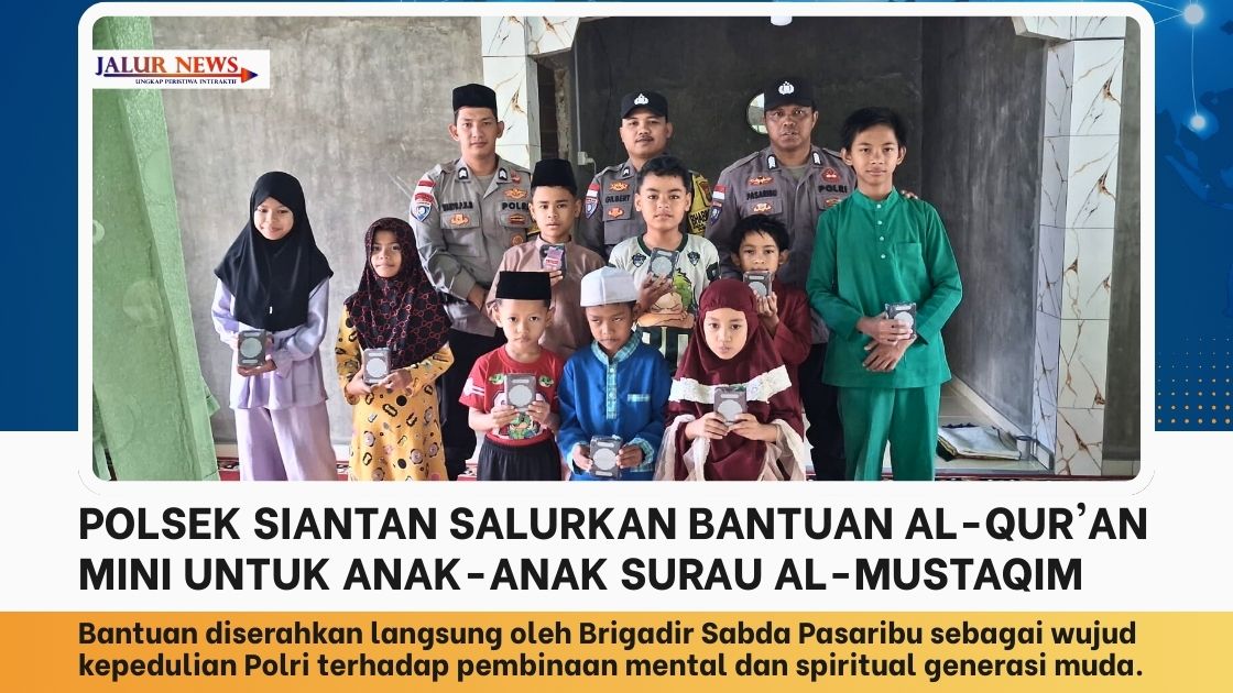 “Kami sangat berterima kasih atas perhatian dari Bapak Kapolsek beserta jajaran Polsek Siantan yang diwakili oleh Brigadir Sabda. Bantuan Al-Qur’an mini ini sangat bermanfaat dan praktis bagi anak-anak kami yang rutin mengaji di surau ini. Semoga Polri, khususnya Polsek Siantan, semakin dicintai masyarakat, sukses selalu dalam menjalankan tugas, dan senantiasa dalam lindungan Allah SWT,” ujar Hariadi.