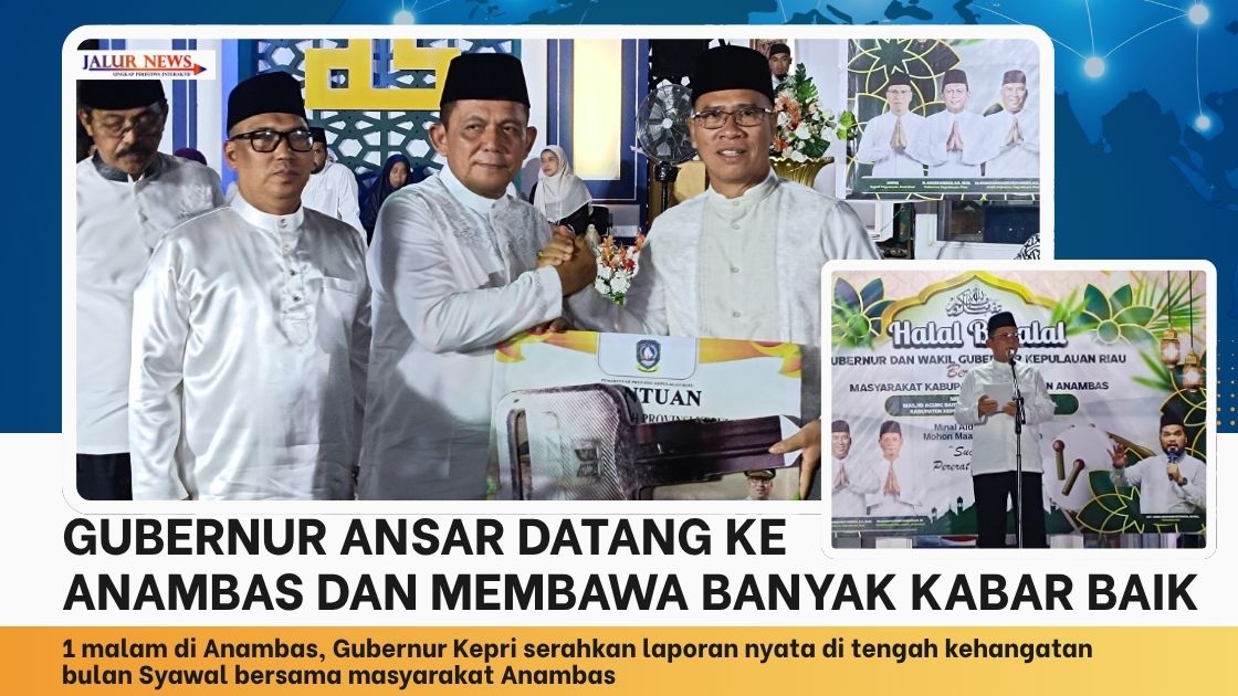 JALUR NEWS, Anambas – Ratusan warga Kabupaten Kepulauan Anambas memadati Astaka Masjid Agung Baitul Ma’mur pada Minggu malam, 12 April 2026. Tidak sedikit di antara mereka yang datang dari pulau-pulau sekitar, menyeberang khusus untuk menghadiri acara Halal Bihalal Pemerintah Provinsi Kepulauan Riau bersama masyarakat Anambas sekaligus bertemu langsung dengan Gubernur Kepulauan Riau, H. Ansar Ahmad.