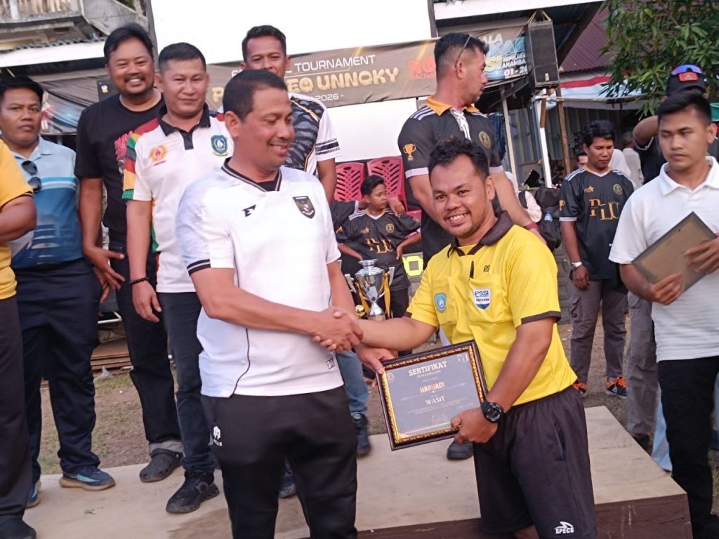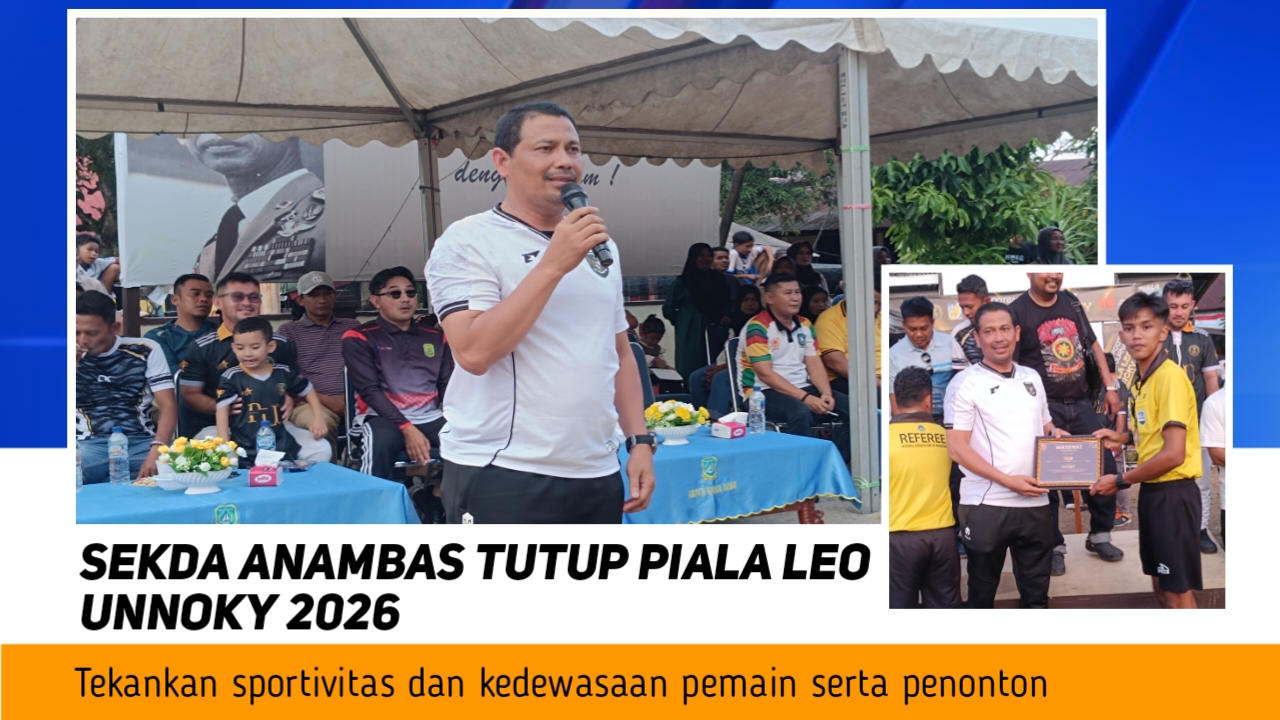 JALUR NEWS, Anambas – Sekretaris Daerah Kabupaten Kepulauan Anambas, Sahtiar, resmi menutup Turnamen Sepak Bola Piala Leo Unnoky 2026 pada Sabtu sore, 18 April 2026, di Lapangan Sulaiman Abdullah, Tarempa. Dalam penutupan tersebut, Sahtiar menekankan pentingnya sportivitas dan kedewasaan baik bagi pemain maupun penonton selama berlangsungnya pertandingan.